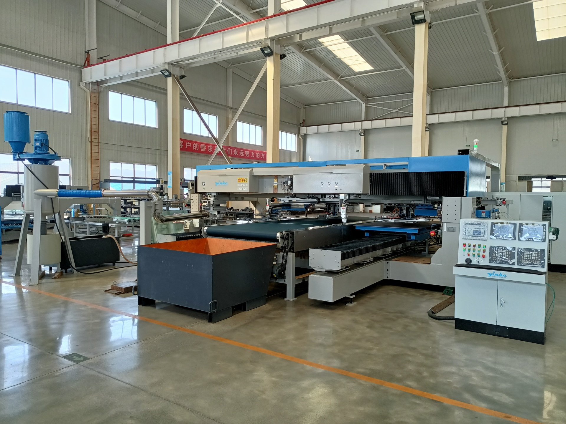该系列设备采用FANUC数控系统,集成控制,同时实现玻璃定位、切割、掰边、磨边、搬运等过程,具有高速度、高精度、高稳定性等特点。